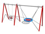 Twin chain swing RH6222K - metal (f.h. 1,5 m). We offer three color variants of the support structure - red, blue and brown. More information