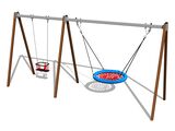 The swing is hung on a metal girder using galvanized chains. The "Bird's Nest" seat is made from polypropylene rope with heavy duty fibres. The hanging ropes are made using HERKULES material (16 mm thick ropes made from polypropylene with a steel internal core). The Baby seat baby is made of rubber and is reinforced with an aluminum insert. All fastening material is galvanized or stainless steel.