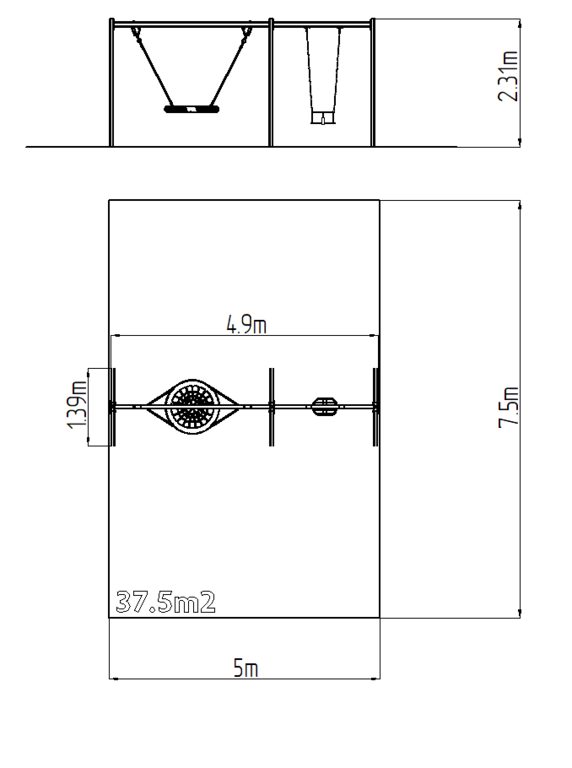 | Fall damping surface: | Rubber or gravel 37.5 m2 |
