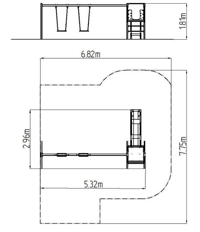 The slide is made from fibreglass. The surface of the slide is made from high quality HDPE plastic (high density coloured polyethylene, which is characterised by high colour stability, UV resistance but mainly safety as it doesn't break and therefore there is no danger of injury to children by sharp fragments). The swings are hung on a metal girder using galvanized chains. The platform is made from HPL (High-pressure laminate, which is characterised by high colour stability and water resistance). The Normal seat is made of aluminum, covered with a soft and comfortable rubber. All fastening material is galvanized or stainless steel.