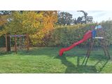 Twin chain swing with a slide RH6252K - metal (f.h. 1 m) - we offer three color variants of the support structure - red, blue and brown. More information