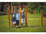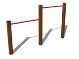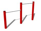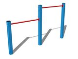 The support structure of the twin fitness rack is made of structural steel which is protected against corrosion by zinc coating, resulting in a very prolonged service life of the workout elements or duplex powder coated with coat curing according to RAL to prevent corrosion and is fixed in a concrete bed. All other metallic elements are also zinc coated or duplex powder coated with coat curing according to RAL to prevent corrosion. The twin fitness rack is constructed with durability and long life in mind. All fastening material is galvanized or stainless steel.