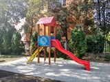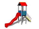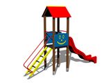 The slide is made from fibreglass. The surfaces of the slides, steps, etc. are made from high quality HDPE plastic (high density coloured polyethylene, which is characterised by high colour stability, UV resistance but mainly safety as it doesn't break and therefore there is no danger of injury to children by sharp fragments). The platform is made from HPL (High-pressure laminate, which is characterised by high colour stability and water resistance). The roof is made from HPL (High-pressure laminate, which is characterised by high colour stability, UV resistance and water resistance). All fastening material is galvanized or stainless steel.