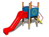 Tower, slide, 2x barrier, sloping ramp with steps and metal handles. More information