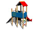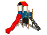 2x tower, slide, A-shaped roof, drawing board, sloping ramp with the rope and HDPE steps, 4x barrier from HDPE. More information