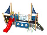 2x tower, slide, metal railing set in a metal frame, 2x post with a flag, drawing board, sloping net access, sloping ramp with the rope and HDPE steps, anchor, helm made from HDPE, bridge with a rope railing, barrier from HDPE, barrier with an apertures, 2x barrier from HDPE. More information