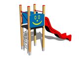 The tower unit support structure is made from thick glued wooden supports. This solution ensures maximum protection against cracking, which is common for products made from solid wood. The wooden supports are impregnated and coated with a triple layer of lacquer, which meets the terms and conditions of the EN71/3 Standard (safe for children's toys). The structures are anchored into the ground in steel plates, which are protected against corrosion by hot-dip galvanizing and fixed in a concrete bed. The anchors are fastened to the play unit with bolts and their structure ensures that they are not in direct contact with the ground. All other metallic elements are also zinc coated or duplex powder coated with coat curing according to RAL to prevent corrosion.