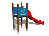 The slide is made from fibreglass. The surface of the slide is made from high quality HDPE plastic (high density coloured polyethylene, which is characterised by high colour stability, UV resistance but mainly safety as it doesn't break and therefore there is no danger of injury to children by sharp fragments). The platform is made from HPL (High-pressure laminate, which is characterised by high colour stability and water resistance). All fastening material is galvanized or stainless steel.