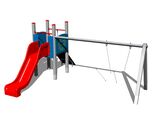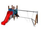 Seats and hinges are not part of the swing. It is necessary to buy a seat (1 pieces) of your choice and curtains (2 pieces). Tower, slide, 2x barrier, sloping ramp with the rope and HDPE steps, metal beam. More information