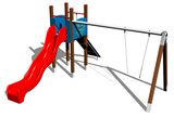 Seats and hinges are not part of the swing. It is necessary to buy a seat (1 pieces) of your choice and curtains (2 pieces). Tower, slide, 2x barrier, sloping ramp with the rope and HDPE steps, metal beam. More information