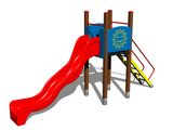 The slide is made from fibreglass. The surfaces of the slides, steps, etc. are made from high quality HDPE plastic (high density coloured polyethylene, which is characterised by high colour stability, UV resistance but mainly safety as it doesn't break and therefore there is no danger of injury to children by sharp fragments). The platform is made from HPL (High-pressure laminate, which is characterised by high colour stability and water resistance). All fastening material is galvanized or stainless steel.