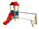 Seats and hinges are not part of the swing. It is necessary to buy a seat (1 pieces) of your choice and curtains (2 pieces). Tower, slide, A-shaped roof, 2x barrier, ladder, metal beam. More information