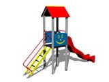 The slide is made from fibreglass. The surfaces of the slides, steps, etc. are made from high quality HDPE plastic (high density coloured polyethylene, which is characterised by high colour stability, UV resistance but mainly safety as it doesn't break and therefore there is no danger of injury to children by sharp fragments). The platform is made from HPL (High-pressure laminate, which is characterised by high colour stability and water resistance). The roof is made from HPL (High-pressure laminate, which is characterised by high colour stability, UV resistance and water resistance). All fastening material is galvanized or stainless steel.