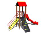 Tower, slide, A-shaped roof, sloping ramp with steps and metal handles, sloping ramp with the roof and HDPE steps, sloping net access. More information