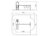 Seats and hinges are not part of the swing. It is necessary to buy a seat (2 pieces) of your choice and curtains (4 pieces). Tower, slide, A-shaped roof, 2x barrier, sloping ramp with steps and metal handles, metal beam. More information