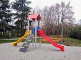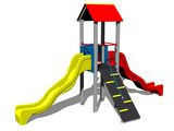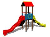 Tower, 2x slide, A-shaped roof, sloping ramp with the rope and HDPE steps, barrier. More information