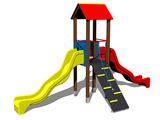Tower, 2x slide, A-shaped roof, sloping ramp with the rope and HDPE steps, barrier. More information