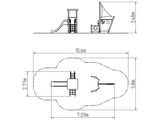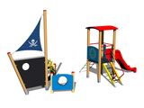 Tower, slide, arched roof, barrier, post with a flag, drawing board, sloping net access, anchor, helm made from HDPE, 2x barrier with an aperture, sloping ramp with steps and metal handles. More information