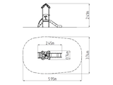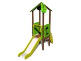 Tower, slide, roof in the shape of a leaf, sloping ramp with steps and HDPE handles, 2x barrier. More information