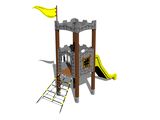Tower, slide, 2x barrier from HDPE, sloping net access, vertical climbing wall on the tower with steps, flag, battlements from HDPE. More information