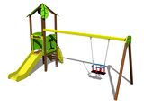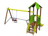 Tower, slide, roof in the shape of a leaf, sloping ramp with steps and HDPE handles, 2x barrier, BABY seat. More information