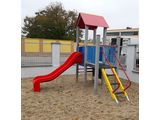 2x tower, slide, A-shaped roof, drawing board, sloping ramp with steps and metal handles, 4x barrier from HDPE, abacus. More information