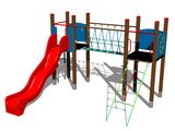 2x tower, slide, sloping net access, ladder, 3x barrier from HDPE, rope bridge. More information