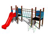 2x tower, slide, sloping net access, ladder, 3x barrier from HDPE, rope bridge. More information
