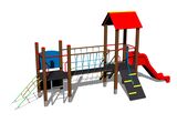 2x tower, A-shaped roof, slide, sloping ramp with the rope and HDPE steps, ladder, sloping ramp with steps and metal handles, bridge with a rope railing, drawing board, barrier. More information
