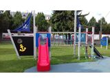 2x tower, slide, metal railing set in a metal frame, 2x post with a flag, drawing board, sloping net access, sloping ramp with the rope and HDPE steps, anchor, helm made from HDPE, rope bridge, 2x barrier from HDPE. More information