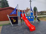 2x tower, slide, metal railing set in a metal frame, 2x post with a flag, drawing board, sloping net access, sloping ramp with the rope and HDPE steps, anchor, helm made from HDPE, bridge with a rope railing, barrier from HDPE, barrier with an apertures, 2x barrier from HDPE. More information