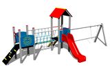Seats and hinges are not part of the swing. It is necessary to buy a seat (1 pieces) of your choice and curtains (2 pieces). 2x tower, slide, A-shaped roof, 3x barrier from HDPE, sloping ramp with the rope and HDPE steps, rope bridge, sloping ramp with steps and metal handles, metal beam. More information