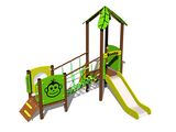 2x Tower, slide, roof in the shape of a leaf, sloping ramp with steps and HDPE handles, sloping ramp with HDPE steps, 2x barrier, rope bridge, barrier with an aperture. More information