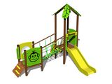 2x Tower, slide, roof in the shape of a leaf, sloping ramp with steps and HDPE handles, sloping ramp with HDPE steps, 2x barrier, rope bridge, barrier with an aperture. More information