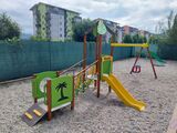 The slide is made from fibreglass. The surfaces of the slides, barriers, etc. are made from high quality HDPE plastic (high density coloured polyethylene, which is characterised by high colour stability, UV resistance but mainly safety as it doesn't break and therefore there is no danger of injury to children by sharp fragments). The rope bridge is made using HERKULES material (16 mm thick ropes made from polypropylene with a steel internal core) and are connected with plastic or aluminium joints. The platform and the ramp are made from HPL (High-pressure laminate, which is characterised by high colour stability, UV resistance and water resistance). The swing is hung on a metal girder using galvanized chains. The seat is made of rubber and is reinforced with an aluminum insert. The chains are stainless steel, resulting in a very prolonged service life of the product. All fastening material is stainless steel.
