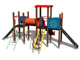 3x tower, slide, 3x barrier made from HDPE, crawl tunnel between the towers, sloping net access, sloping ramp with the rope and HDPE steps, sloping climbing wall, sloping ramp with steps and metal handles. More information