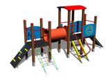 3x tower, slide, 3x barrier made from HDPE, crawl tunnel between the towers, sloping net access, sloping ramp with the rope and HDPE steps, sloping climbing wall, sloping ramp with steps and metal handles. More information