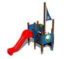 3x tower, slide, 2x barrier made form HDPE with circle, barrier made form HDPE with parrot, barrier made form HDPE with aperture, bow with anchor and wave, rudder, post with a flag. More information