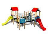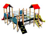 4x tower, 2x A-shaped roof, 2x slide, 3x barrier from HDPE, sloping ramp with the rope and HDPE steps, ladder, 2x rope bridge, sloping ramp with steps and metal handles, 2x bridge with a rope railing. More information