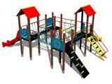 4x tower, 2x A-shaped roof, 2x slide, 3x barrier from HDPE, sloping ramp with the rope and HDPE steps, ladder, 2x rope bridge, sloping ramp with steps and metal handles, 2x bridge with a rope railing. More information
