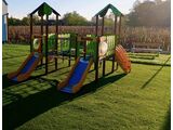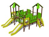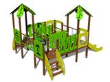 4x Tower, 2x slide, 2x roof in the shape of a leaf, 2x sloping ramp with steps and HDPE handles, 2x barrier, rope bridge, 2x barrier with an aperture, 2x bridge with plastic railings. More information
