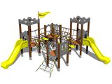 4x tower, 2x slide, 4x barrier from HDPE, sloping net access, 2x rope bridge, vertical climbing wall on the tower with steps, flag, 2x battlements from HDPE, 2x rope bridge with steps. More information