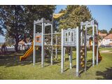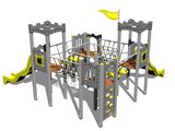 4x tower, 2x slide, 4x barrier from HDPE, sloping net access, 2x rope bridge, vertical climbing wall on the tower with steps, flag, 2x battlements from HDPE, 2x rope bridge with steps. More information
