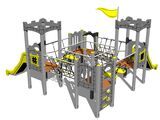 4x tower, 2x slide, 4x barrier from HDPE, sloping net access, 2x rope bridge, vertical climbing wall on the tower with steps, flag, 2x battlements from HDPE, 2x rope bridge with steps. More information