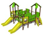 4x Tower, 2x slide, 2x roof in the shape of a leaf, 2x sloping ramp with steps and HDPE handles, 2x barrier, rope bridge, 2x barrier with an aperture, 2x bridge with plastic railings. More information