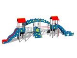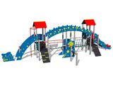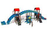 The slide is made of fibreglass. The face of the slide and the step boards are made of high quality HDPE (high-pressure, full-coloured polyethylene, which is characterised by high colour stability, UV resistance and mainly safety because it is rigid and there is no risk of injury caused by sharp broken fragments). Ropes and nets are made of HERKULES (16 mm polypropylene ropes with inner steel core) and are connected by plastic connectors. The platforms, ramp and the climbing walls are made from HPL (High-pressure laminate, which is characterised by high colour stability and water resistance). The climbing holds are made from the mix of silica sand and epoxy resin, which ensures long life, colour preservation as well as skin friendly surface. The roofs are made from HPL (High-pressure laminate, which is characterised by high colour stability, UV resistance and water resistance). All connecting material is zinc or stainless steel coated.