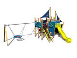 6x tower, 2x slide, 2x metal railing set in a wooden frame, 2x post with a flag, sloping net access, helm made from HDPE, 4x barrier from HDPE, 2x barrier with an aperture, sloping ramp with steps and metal handles, drawing board with an anchor, chain swing. More information