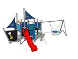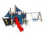 6x tower, 2x slide, 2x metal railing set in a metal frame, 2x post with a flag, sloping net access, helm made from HDPE, 4x barrier from HDPE, 2x barrier with an aperture, sloping ramp with steps and metal handles, drawing board with an anchor, chain swing. More information
