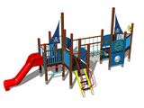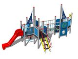 6x tower, slide, 2x post with a flag, sloping net access, sloping ramp with steps and metal handles, helm made from HDPE, 10x barrier from HDPE, 2x barrier with an aperture, rope bridge, abacus. More information