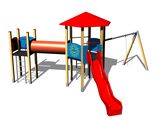 Seats and hinges are not part of the swing. It is necessary to buy a seat (1 pieces) of your choice and curtains (2 pieces). 2x tower, roof, slide, crawl tunnel between the towers, 2x ladder, metal beam, 5x barrier from HDPE. More information